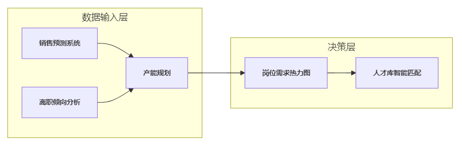 传统招聘规划常滞后于业务变化。某汽车零部件企业在红海eHR中接入生产订单数据后,系统自动预测Q3需新增200名焊接技师,并触发校企合作库定向寻源。这种“业务需求→人力规划→人才供给”的实时联动(见图3),使关键岗位填补周期缩短57%。