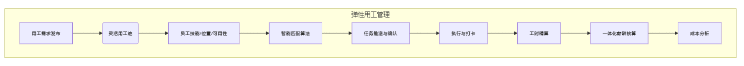 智能匹配与调度平台: 建立企业内部的“灵活用工池”,系统可根据门店实时需求(基于智能排班结果或突发情况)和员工技能、位置、可用时间进行智能匹配与快速调度,并通过移动端高效触达和确认。某咖啡连锁通过内部灵活用工平台,在门店高峰时段或员工缺勤时,快速调动附近其他门店或区域的空闲员工支援,平均补位时间缩短至30分钟内。
