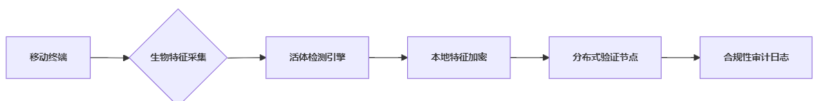 关键技术突破在于动态活体检测模型的轻量化——仅需0.3秒即可完成3万特征点比对,同时支持离线验证。如图1所示,该架构通过边缘计算节点实现数据本地闭环: