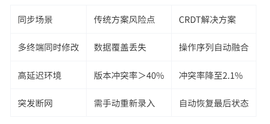 对于地质勘探等无网络场景,移动考勤需解决“弱网环境数据冲突”的核心痛点。红海云在西部矿业项目采用的CRDT(无冲突复制数据类型)技术,实现多终端离线打卡数据自动合并。如表1所示,该机制确保不同网络状态下的数据完整性:
