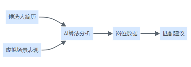 智能化匹配流程图,展示简历、虚拟表现与岗位数据经AI分析后生成匹配建议的过程。