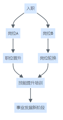 企业内部人才流动结构图,展示员工在不同岗位间的成长与发展路径