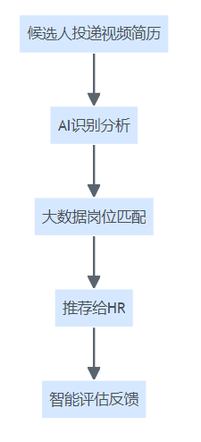 视频招聘流程中,简历递交-智能分析-岗位匹配-评估反馈的整体链路。