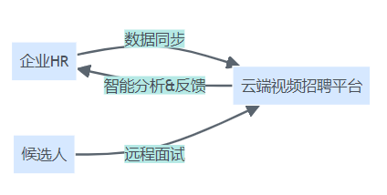 HR、候选人与平台间的数据和面试流程实时交互结构。