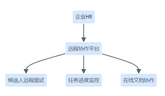 HR通过系统平台发起远程面试、进度监控与文档协作,连接全球候选人和业务团队。