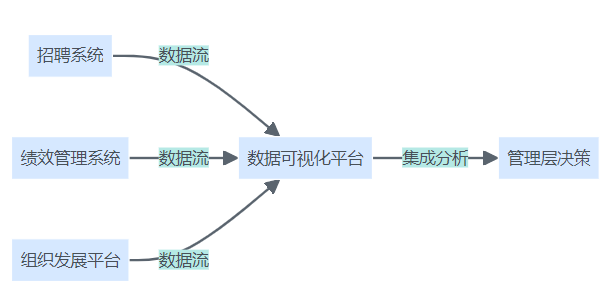 2025年,招聘数据可视化技术将深度融入企业的人力资源管理生态。与ATS、绩效管理、组织发展等系统无缝集成,实现招聘数据与员工发展、用工成本、组织效能等多维数据的互联互通。例如,某多元化集团通过数据中台打通招聘与在岗绩效数据,支持用工预测、人才储备和组织优化一体化决策。