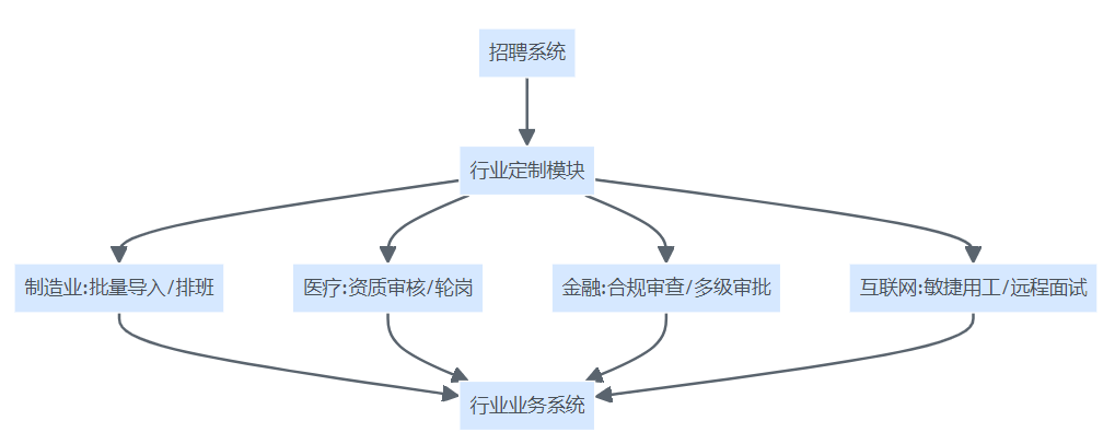 招聘系统行业垂直化定制集成图,展示各行业模块与业务系统的智能对接。