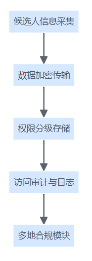 招聘系统安全合规与隐私保护流程图,展示数据采集到合规管理的全流程管控。