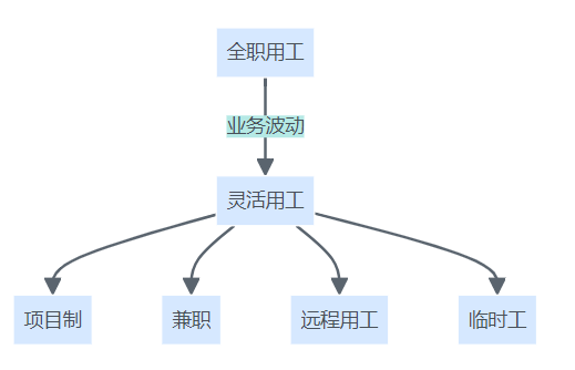 企业用工结构图,包括全职用工、项目制、兼职、远程用工和临时工的多元分布。