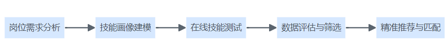 图4:数据驱动招聘流程示意图,依次包括岗位需求分析、技能画像建模、在线技能测试、数据评估及精准推荐。