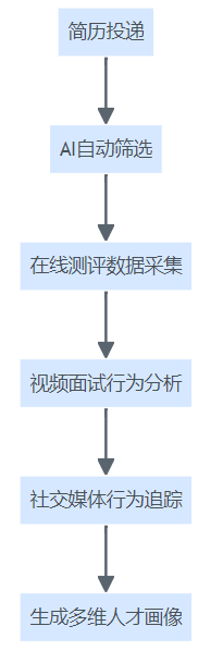 AI驱动的招聘流程分析结构图,展示从简历投递到人才画像生成的全流程。