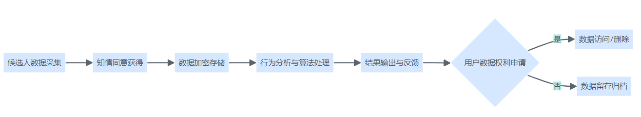 求职者行为分析流程中的数据合规与隐私保护环节流程图。