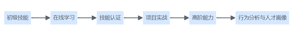 从初级技能到高阶能力,行为分析系统追踪候选人技能成长路径的分析示意图。