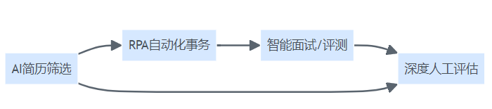 AI与自动化重塑招聘流程结构图,展示从简历筛选到深度评估的自动化招聘链路。