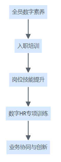 企业数字化素养与技能再培训路径结构图,展示从入职到专项训练的全链路能力提升。