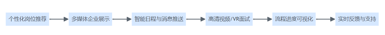 涵盖岗位推荐、企业展示、智能日程、VR面试、进度可视化等环节