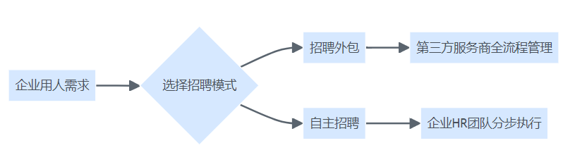 企业招聘决策流程结构图—展示企业如何在用人需求下选择招聘外包或自主招聘,并对应不同的执行路径