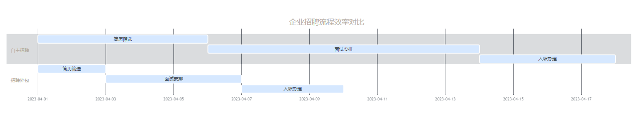 企业自主招聘与招聘外包在各流程环节的时间消耗对比甘特图