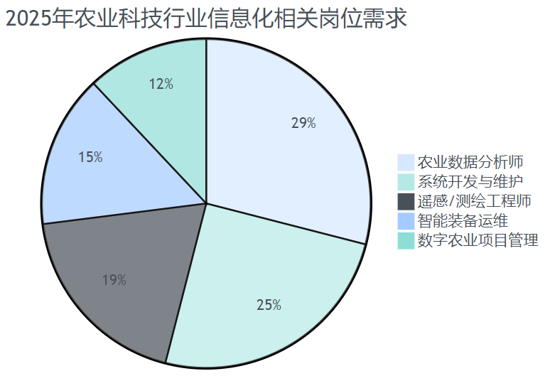 2025年农业科技行业信息化相关岗位需求分布饼图,农业数据分析师占比最高。