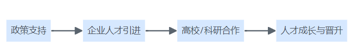 政策支持推动农业科技人才引进与成长流程,从政策到企业、高校合作再到人才成长。