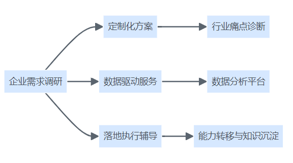 传统咨询服务以“标准模板+简单交付”为主,而2025年,定制化方案占全部咨询项目的比例提升至52%。企业希望咨询顾问能深入业务流程,针对自身组织结构、市场环境定制解决路径。数字化与数据驱动服务普及