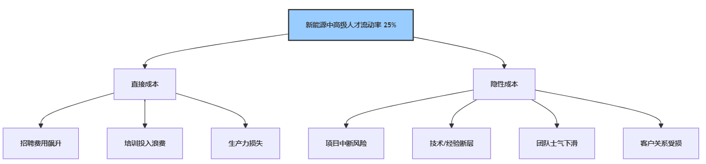 领英(LinkedIn)人才大数据实验室监测显示,2024年新能源行业中高级人才主动离职率(不含裁员)达到22%,预计2025年将攀升至25%左右。这一数字显著高于传统制造业。高流动性的背后,是产业爆发性增长带来的巨量机会、资本持续涌入推高的薪酬预期、以及企业间围绕顶尖人才展开的激烈争夺战。高流动率的危害不容小觑:直接成本包括高昂的招聘费用(猎头费、广告费)、入职培训投入以及新员工生产力爬坡期的效率损失。隐性成本更为巨大:核心技术或业务骨干流失可能导致项目中断、关键技术泄露、团队士气受挫、客户关系受损,甚至影响企业战略推进。某专注于储能系统集成的中型企业,在2024年下半年连续失去三位掌握核心控制算法的工程师,直接导致其新一代产品上市计划推迟半年,市场份额被竞争对手蚕食。调研发现,离职原因中,“寻求更高薪酬待遇”和“追求更具挑战性的职业发展平台”高居前两位,反映了人才对物质回报与成长空间的强烈诉求。