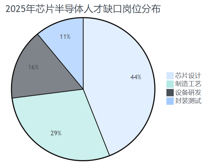 2025年芯片半导体行业人才缺口分布饼图,芯片设计占比最高。