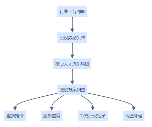值得注意的是,随着行业周期波动加剧,部分企业开始探索激励方案的灵活调整。例如,针对市场低迷期,企业会采用折价期权、补充股权授予和现金补偿等方式,确保激励机制不因股价下跌而失效。