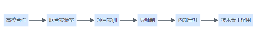 芯片半导体企业人才战略升级与培养路径流程图,强调产学研结合和内部晋升。