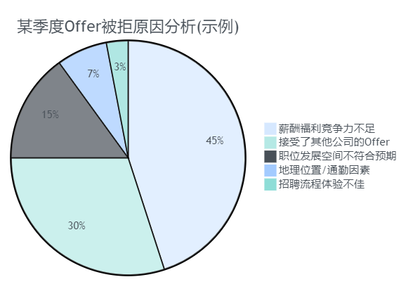 数据归因分析: 精确统计Offer发放量、接受量、拒绝量,计算Offer接受率。结合候选人档案中的反馈记录(如拒绝原因),分析拒Offer的主要原因(薪酬?发展?地点?流程?),为优化提供方向。系统还能跟踪发出Offer到候选人确认的时间间隔。