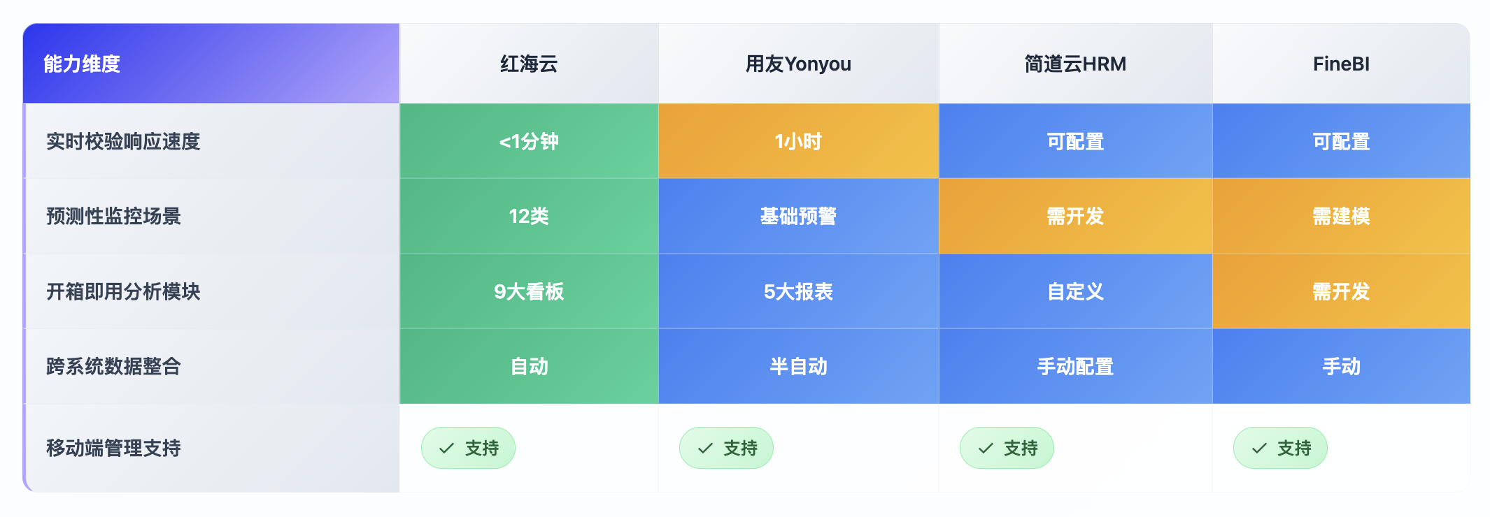 用友Yonyou/金蝶HR Cloud:用友和金蝶等综合性ERP系统则侧重于财务与HR一体化,其数据校验更多体现在业财数据打通后的逻辑一致性检查。
