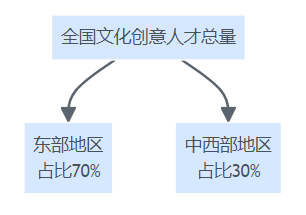 2025年全国文化创意人才区域分布结构图,突出东部与中西部比例差异。