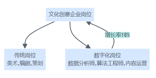 2025年文化创意企业传统与数字化岗位结构对比,突出数字化岗位增长率显著。