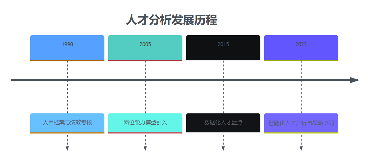 人才分析发展历程结构图,展示从传统档案到智能化分析的演进过程。