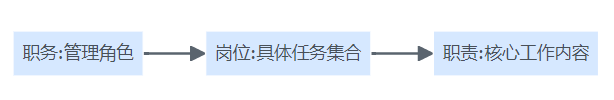 职务、岗位、职责关系结构图,展示三者在组织中的层级与逻辑联系。