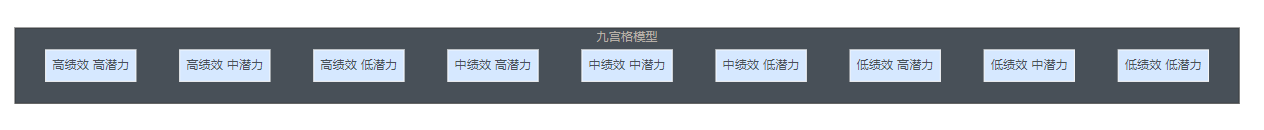 人才盘点示意图,展示绩效与潜力双维度评估员工分布情况。