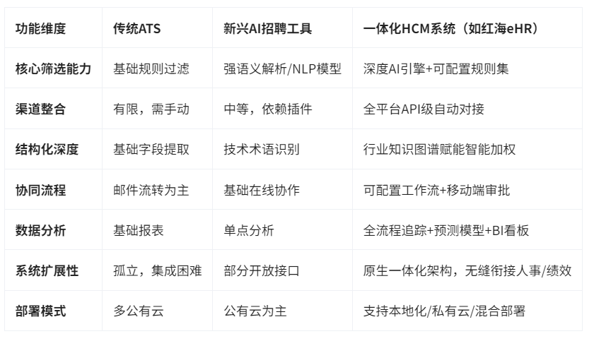面对市场上纷繁的工具选项,企业需结合自身规模、招聘体量、IT生态谨慎评估。以下为关键维度对比: