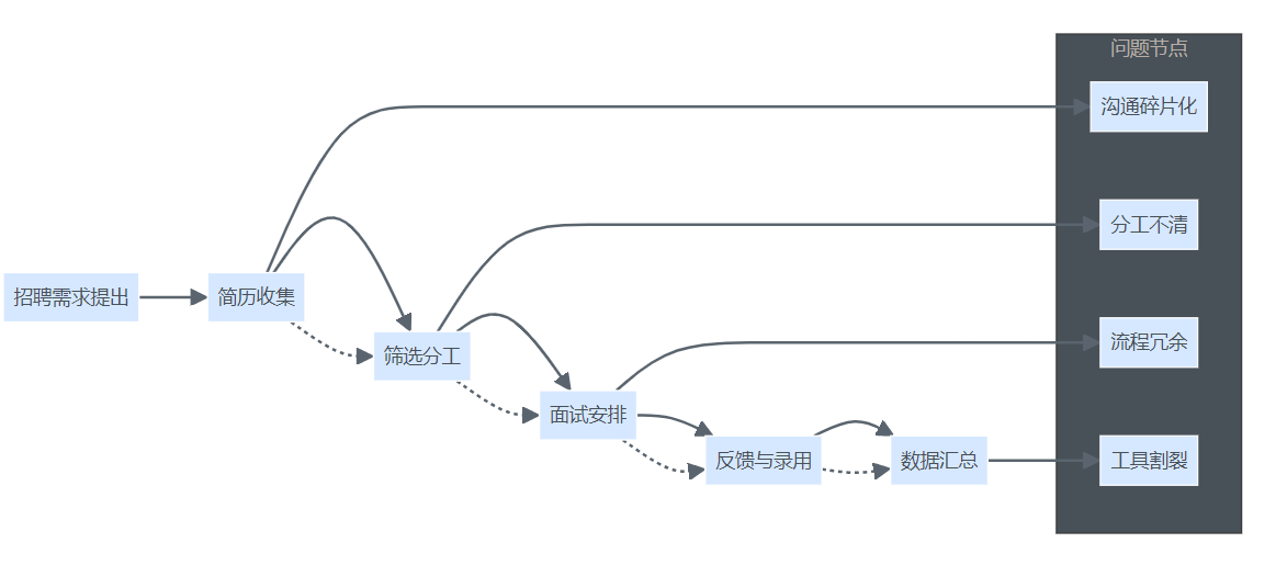 第二,职责分工模糊。招聘流程中,HR、用人经理、面试官等角色界限不清,常见任务重叠或遗漏,影响协作效率。