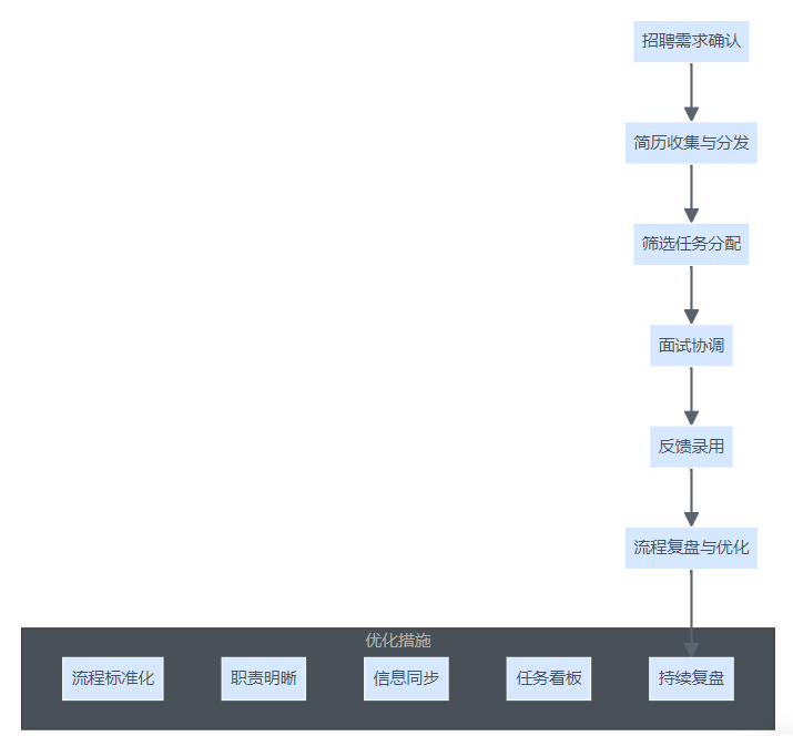 针对招聘团队协作效率低下的问题,企业可以从流程、管理、技术三个维度入手进行系统优化。结合制造业与互联网企业实际场景,以下为流程优化的关键思路: