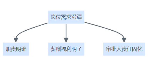 岗位需求澄清流程图,展现职责、薪酬福利、审批责任的三大明确方向。