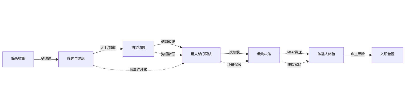 候选人体验差:流程冗长、反馈迟缓,优质候选人被动等待,企业雇主品牌受损。