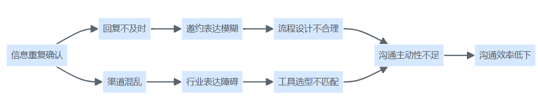 常见候选人沟通效率低下场景及成因结构图,展示信息重复、回复不及时、渠道混乱等问题如何影响整体沟通效率。
