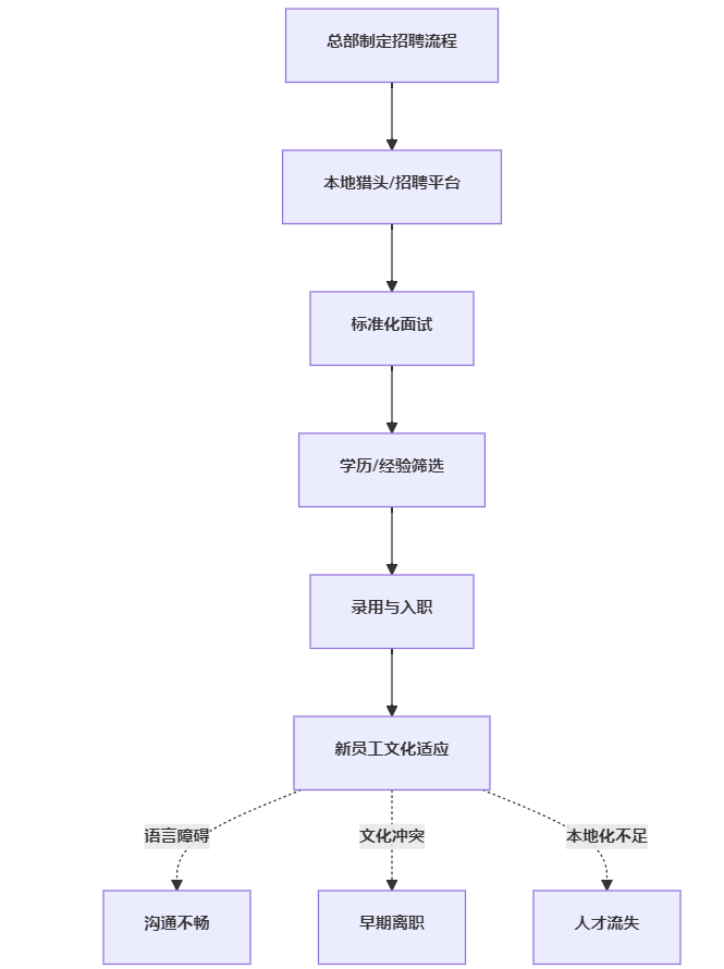 跨文化招聘障碍已成为企业全球化进程中的“隐形门槛”。根据现代国企研究与多家人力资源智库调研,跨文化障碍主要体现在语言沟通、价值观冲突、管理风格不一致与法律合规多重挑战。例如,某制造业企业在印度市场招聘工程师时,因对当地节假日与工作时间认知不足,导致入职率远低于预期;而一家互联网公司在拉美市场招聘运营人员时,因薪酬结构未能本地化,优秀候选人流失率高达30%。