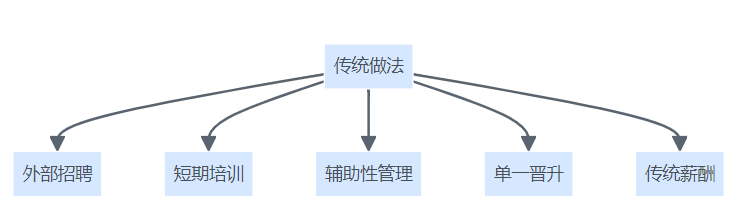 图2:传统人才管理做法结构图(Alt:企业传统人才管理方法及其核心环节)