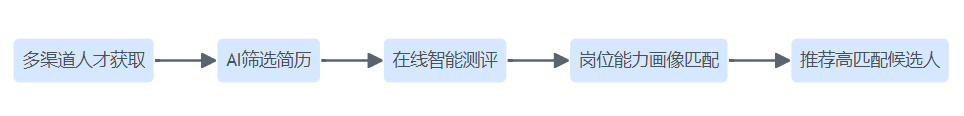 AI和大数据驱动下,从多渠道招聘到智能测评和岗位匹配的数字化招聘流程结构图