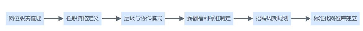 岗位分析标准流程图,展示从职责梳理到岗位库建立的关键环节