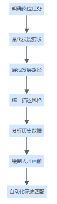 职位描述和人才画像流程图,展示岗位任务、技能、发展路径到画像和自动筛选的全过程