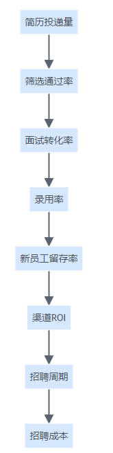 数据驱动招聘分析指标看板,展示各关键数据节点与转化率的连贯关系