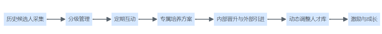 人才储备池建设与培养流程图,展示从采集、互动到培养和激励的完整流程