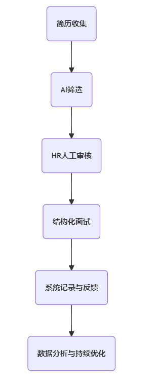 融合型招聘流程结构图,展示AI筛选、人工审核、结构化面试与系统化管理的协同步骤。